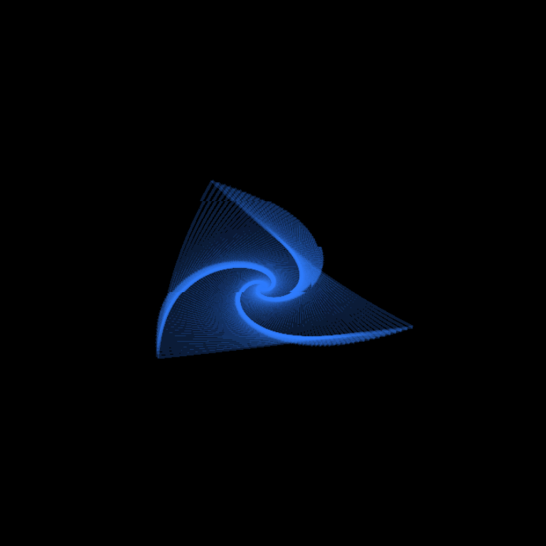 We have seen plenty of dazzle from the escaped points, but what lies within Mandelbrot's abyss? Following one point on its journey inward, we connect the dots* to reveal a spiral. (colors: z, z^2, and z^2 + c)